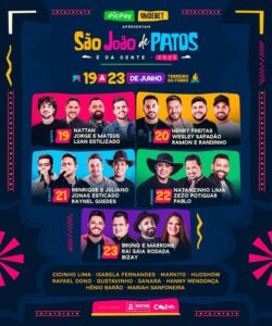 A Prefeitura de Patos divulgou, nesta quinta-feira (13), a programação oficial do São João 2025, uma das festas mais aguardadas do ano no sertão paraibano. O evento de lançamento, foi realizado na praça de eventos do Patos Shopping, contou com a presença do vice-governador da Paraíba, Lucas Ribeiro, deputados estaduais, vereadores, imprensa, autoridades e população em geral.